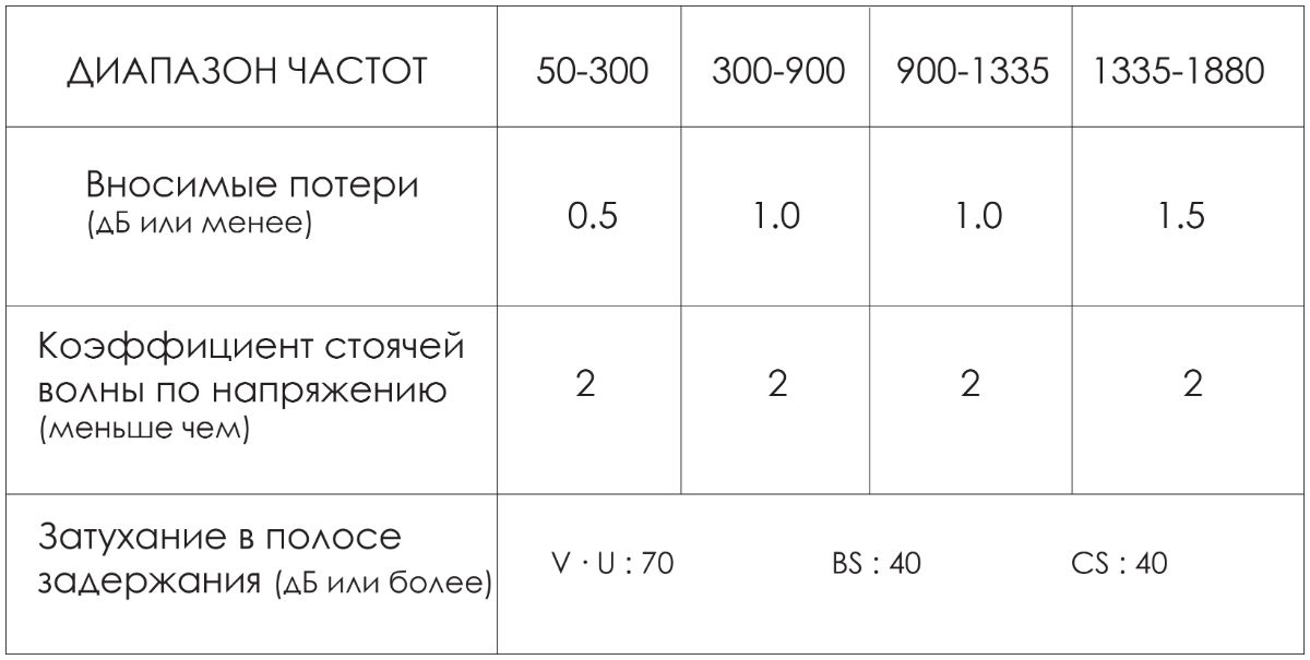 Входное/выходное сопротивление - 75 Ом.